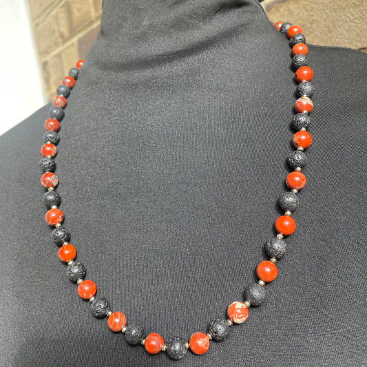 Red Jasper + Lava Stone 8mm gold accents