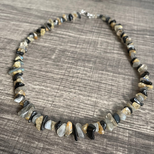 Obsidian, Labradorite, Golden Rutilated Quartz