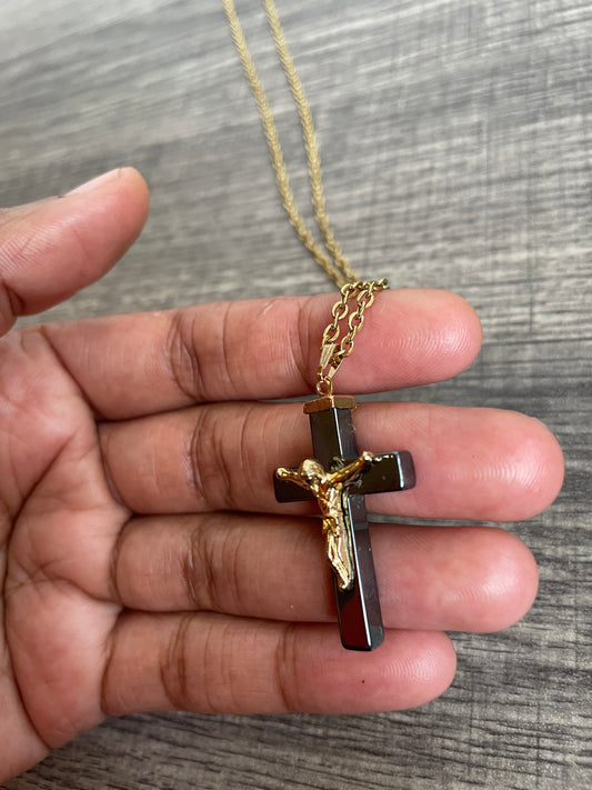 Hematite Jesus Cross