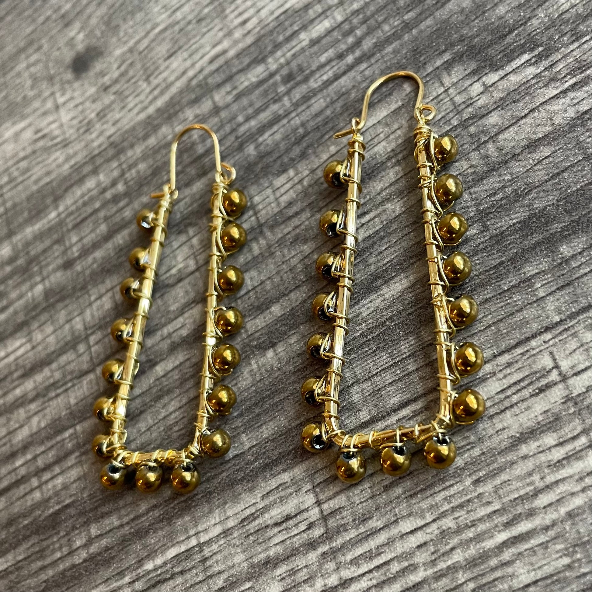 24k plated brass hoops. Gold hematite is for grounding, calming and health